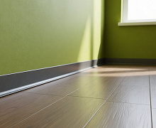 Особенности монтажа: алюминиевый плинтус крепится к стене на жидкие гвозди . Для оформления внутренних и наружных углов используется специальная алюминиевая фурнитура или запил под 45 градусов.