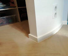 Немецкий плинтус Дёллькен из ХДФ на древесноволокнистой основе перекроет зазор между стеной и полом до 13мм.