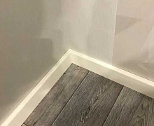 МДФ плинтус от компании "Лука". Перекроет зазор между стеной и полом до 16 мм.