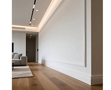 Белый плинтус из полистирола высокой плотности от компании HI WOOD.
